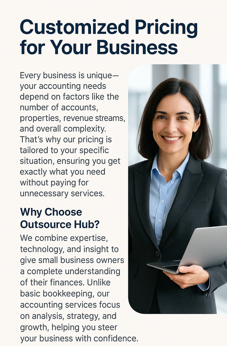 Contact us today to discuss your accounting needs and receive a customized pricing plan designed for your business.
