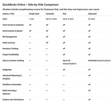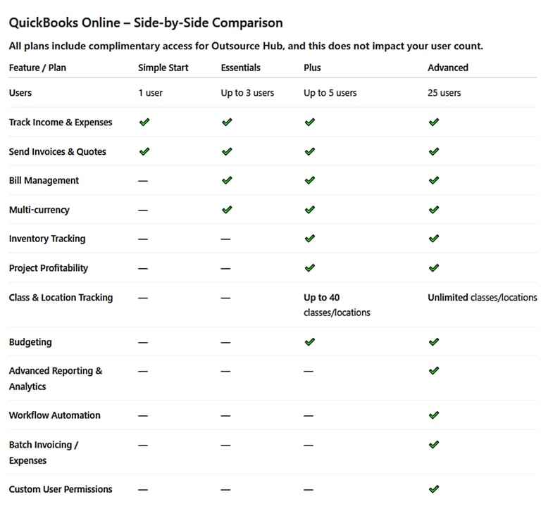 QuickBooks Online offers four Bookkeeping/Accounting plans