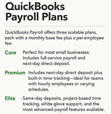 QuickBooks Payroll integrates directly inside QuickBooks Online, keeping your accounting and payroll under one secure roof. It supports all 50 states with built-in rates, tax forms, and compliance rules—so your payroll stays accurate no matter where your employees live or work.