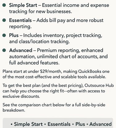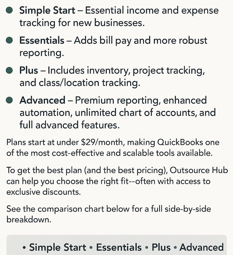 QuickBooks Online automates routine tasks, syncs directly with your bank accounts, and gives you a clear, always-updated snapshot of your business’s financial health. Whether you prefer to stay hands-on or hand the whole process off to Outsource Hub, QuickBooks provides a solid, streamlined foundation.