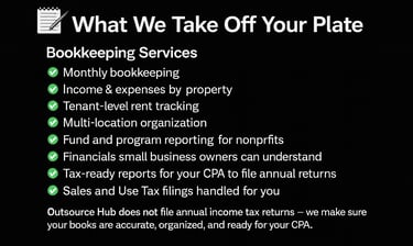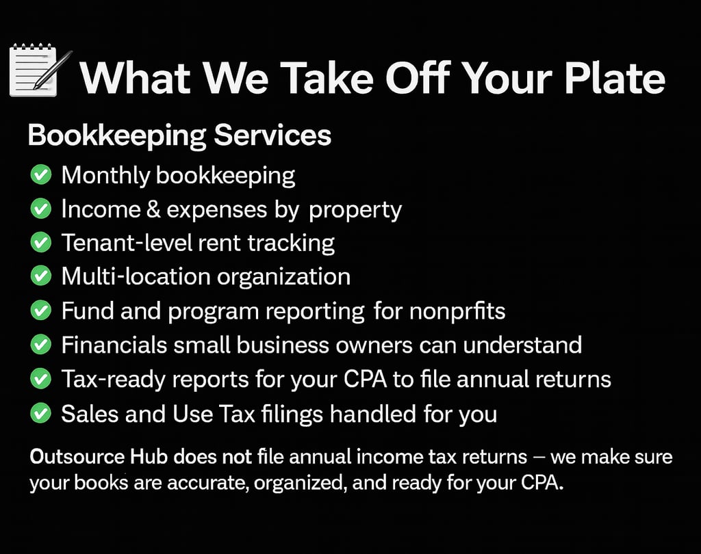 Let Outsource Hub bring clarity, order, and peace of mind to your financial world.